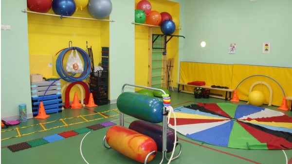 Спортивный зал расположен на 2 этаже площадью 800 кв. м. В зале имеется спортивное оборудование и инвентарь, тренажеры, 2 футбольных поля, одно из которых с искусственным покрытием, полоса препятствий, 4-детские игровые площадки, в зимнее время хоккейный корт.