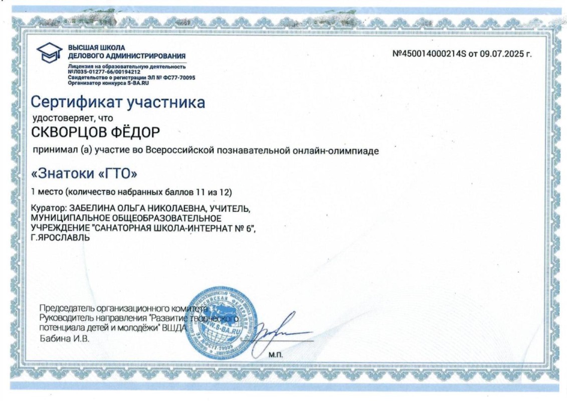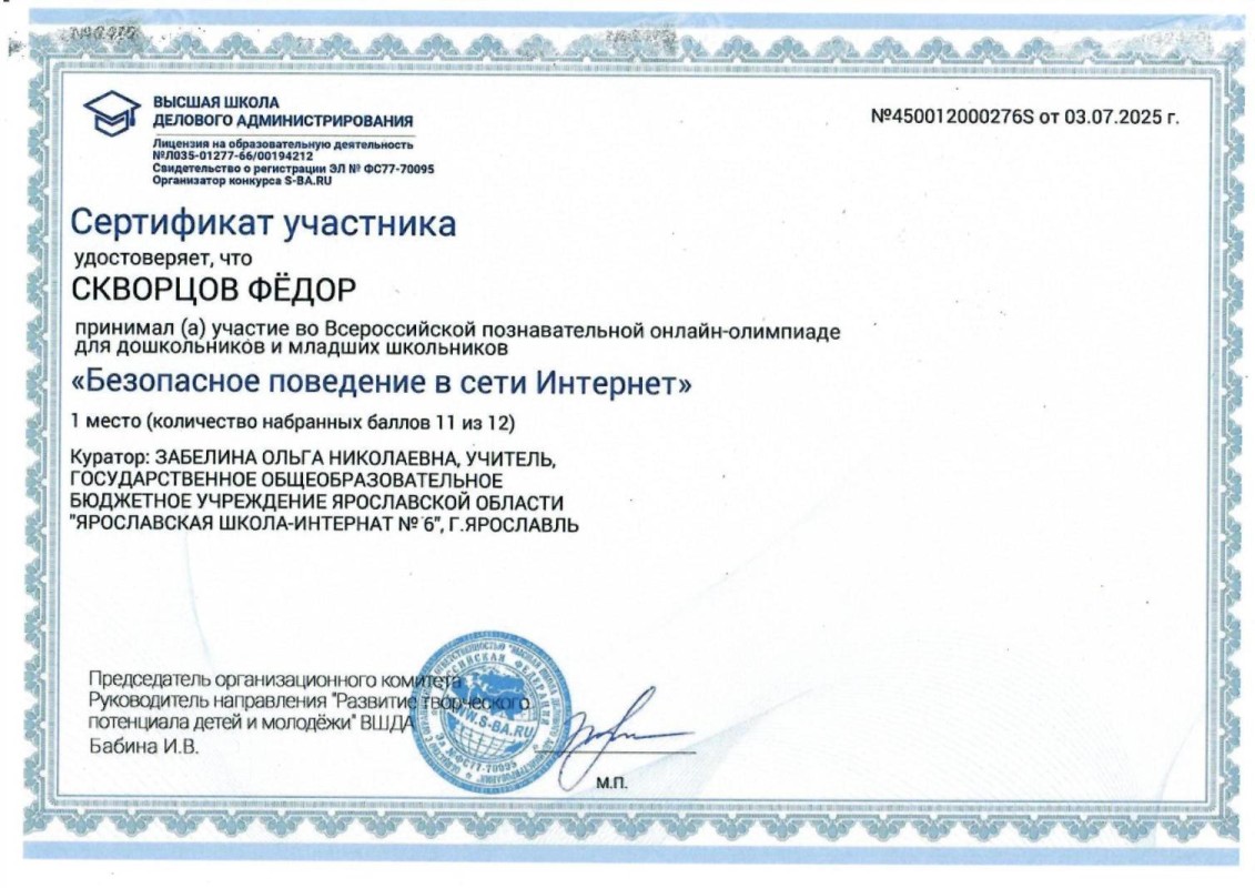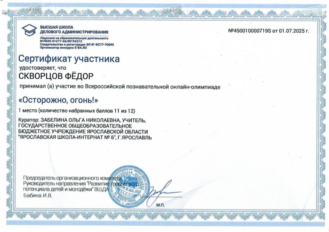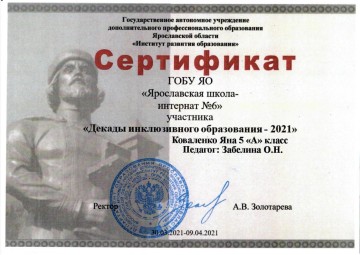 Государственное общеобразовательное бюджетное учреждение Ярославской области "ЯРОСЛАВСКАЯ ШКОЛА-ИНТЕРНАТ №6"